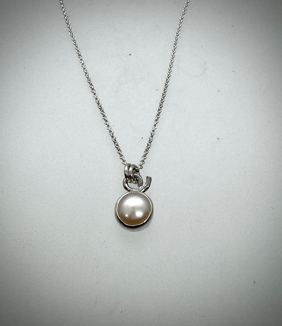 Sterling Piece of Maine Sea Glass and Pearl Necklace